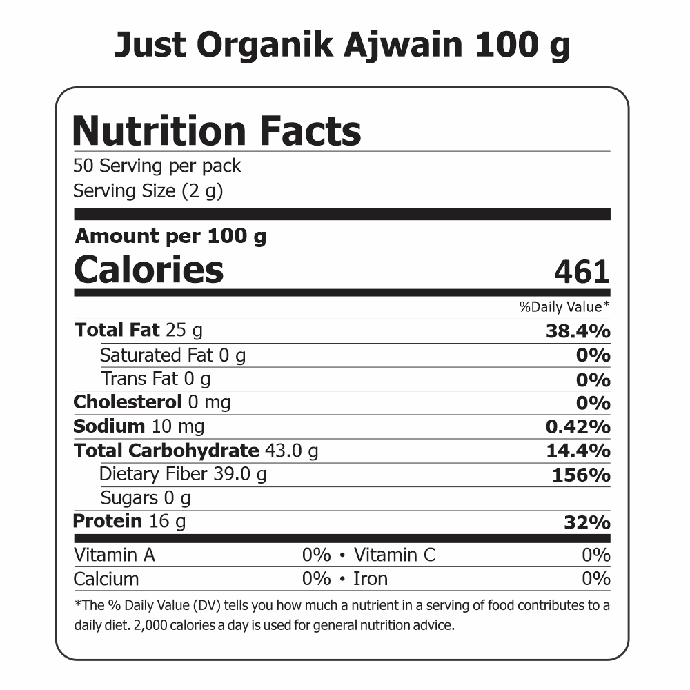Just Organik Ajwain is a 100% organic herb and is free from chemicals, pesticides and GMO’s. We ensure the most sustainable and hygienic methods in their production.