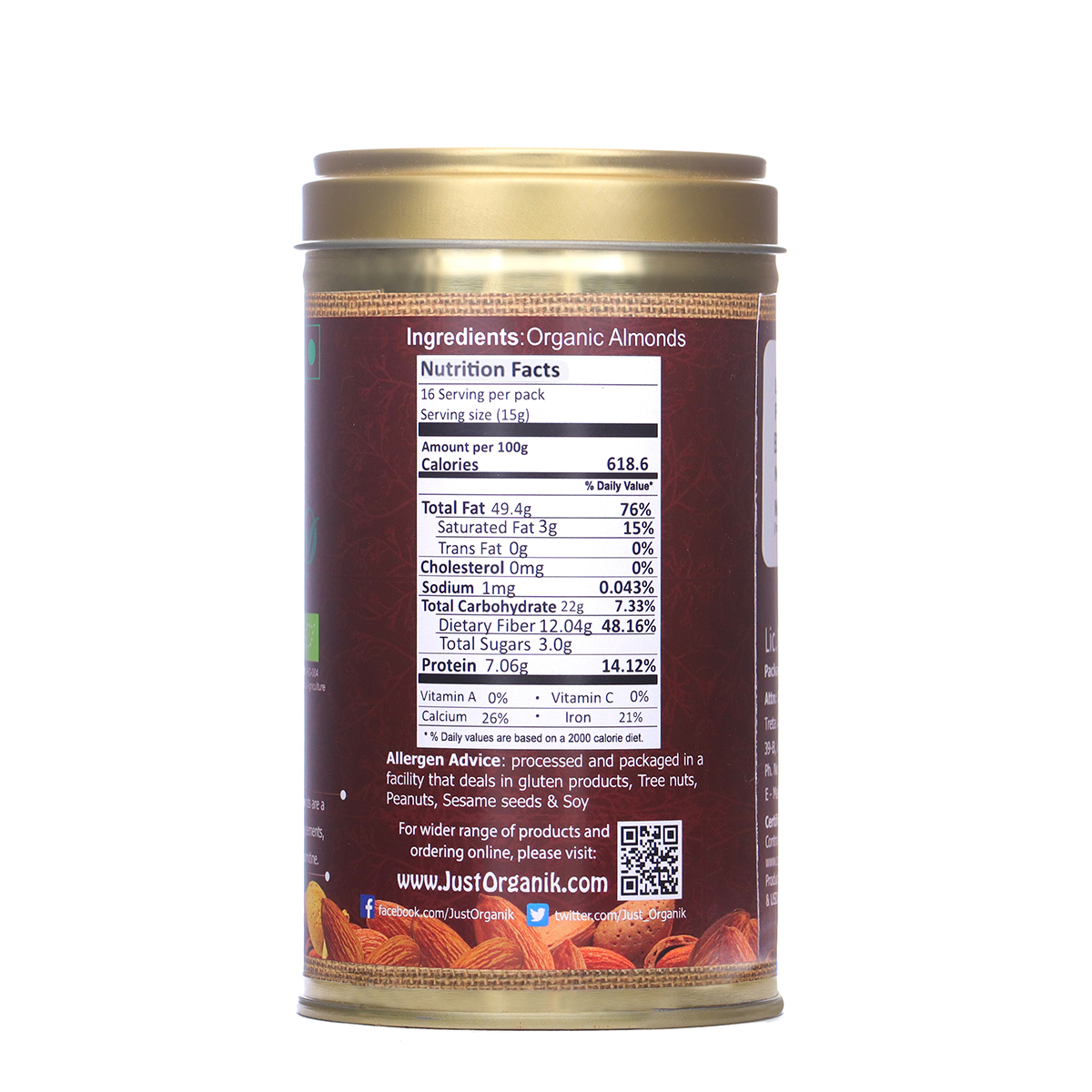 • Just Organik Almonds are rich sources of vitamins, and minerals and packed with numerous health promoting phytochemicals.