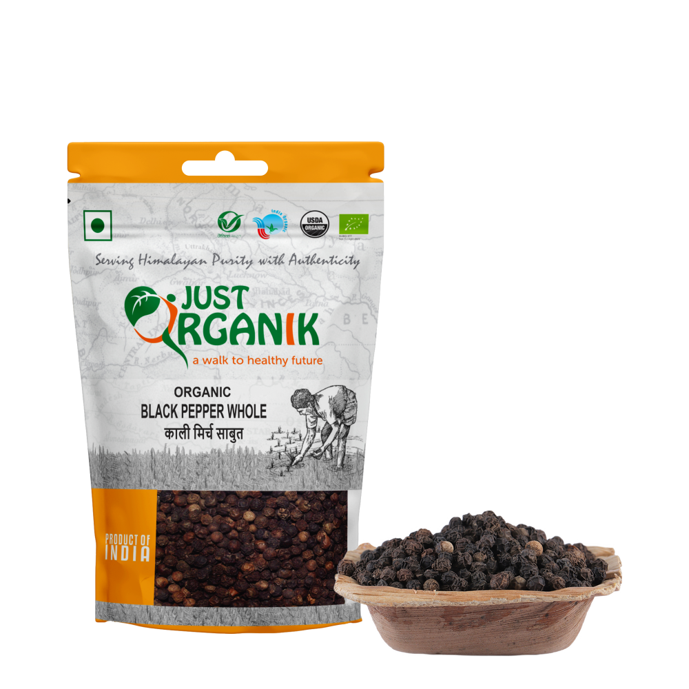 Sourced from certified organic farms, Just Organik hand-picked Black pepper ensures the same refreshing taste in every bite of the dish in which it is added. About the Brand: Just Organik stands for just and ethical supplies of organic products. We sanitize the whole process, right from promoting sustainable farming practices to making healthy food items more accessible to people. Just Organik products are chemical free and are certified as per India Organic, USDA and EU standards.