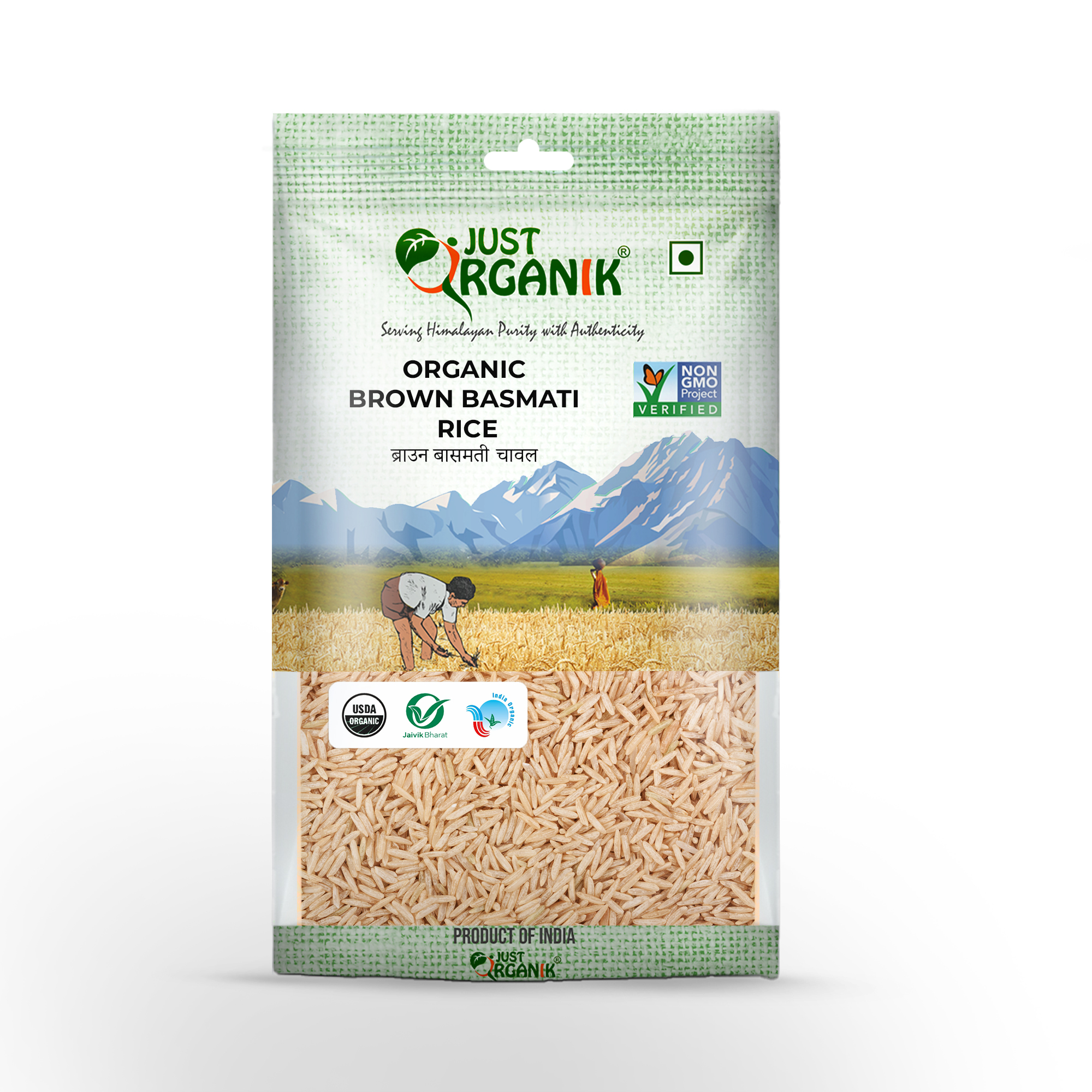 Organic Wholeness: Just Organik Brown Basmati is the whole grain of the Basmati rice with the outer hull and bran intact. It is procured from the famous Doon valley in Uttarakhand, India.