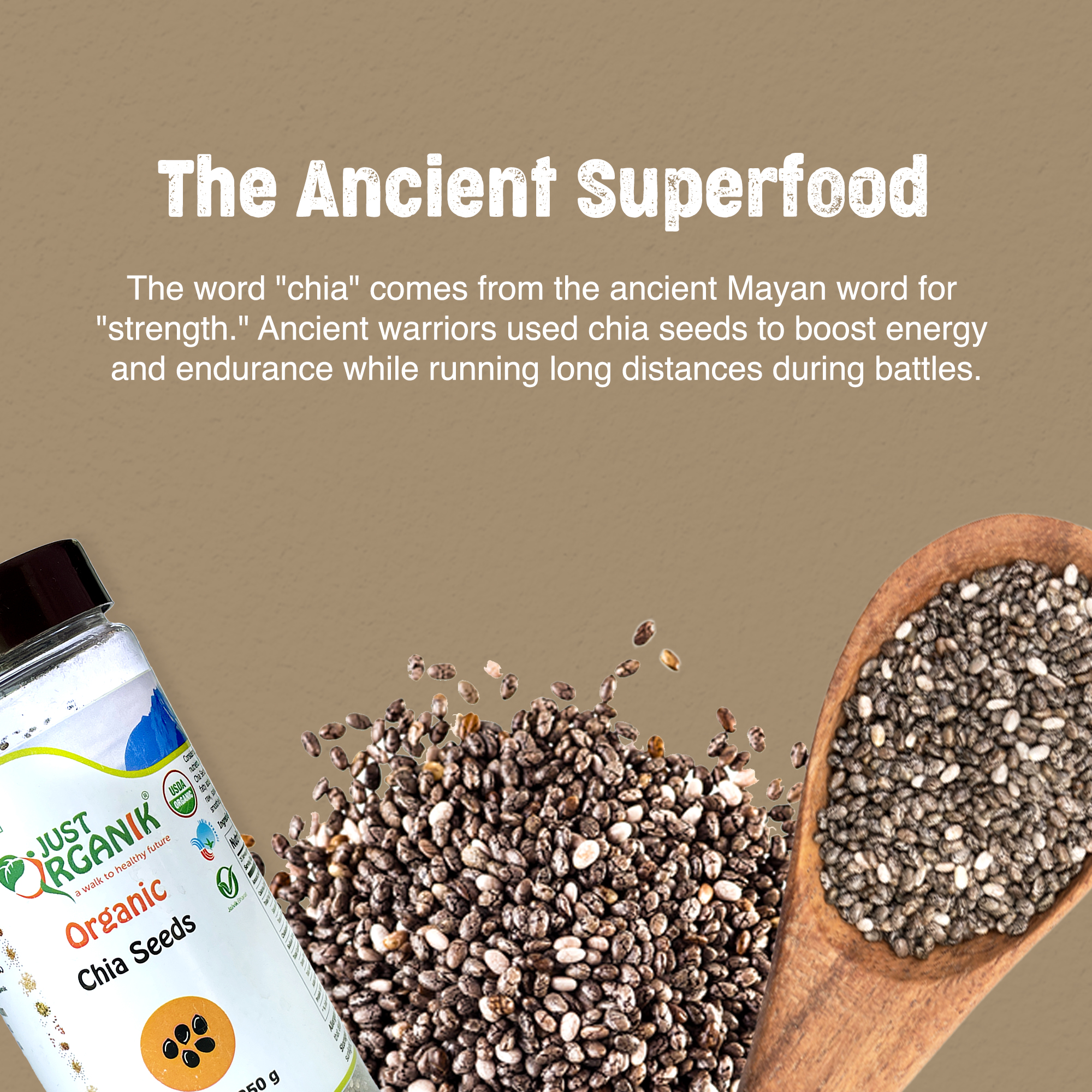 Modern-day superfood: Considered a modern-day superfood, Chia seeds were used by the ancient Aztecs and Mayans as a sustainable food. ‘Chia’ means ?strength? in the Mayan language, and chia seeds were known as ‘runners food’, as runners and warriors used them as food while running long distances, during battles.