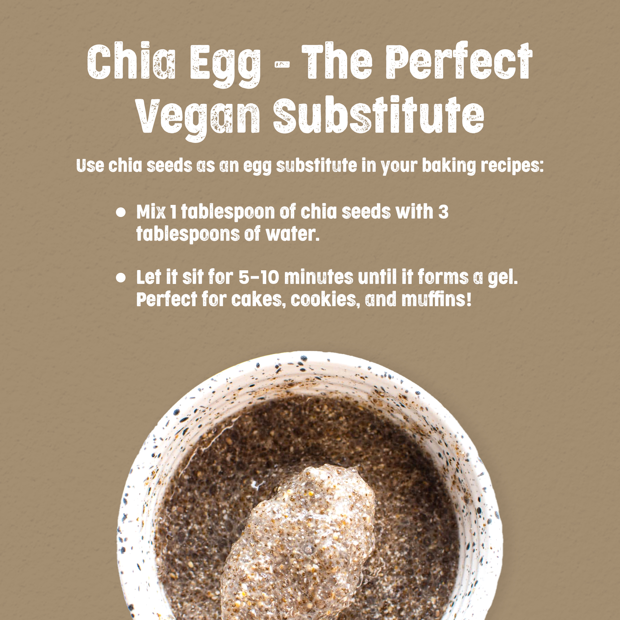 Uses in different recipes: Just Organik Chia seeds can be eaten raw, soaked in juices, added to porridges, puddings, smoothies, sprinkled over salads or added to baked goods. The crushed or powdered seeds are also used to prepare ‘Chia egg’ – a vegan replacement of egg, when mixed with water in 3:1 ratio.