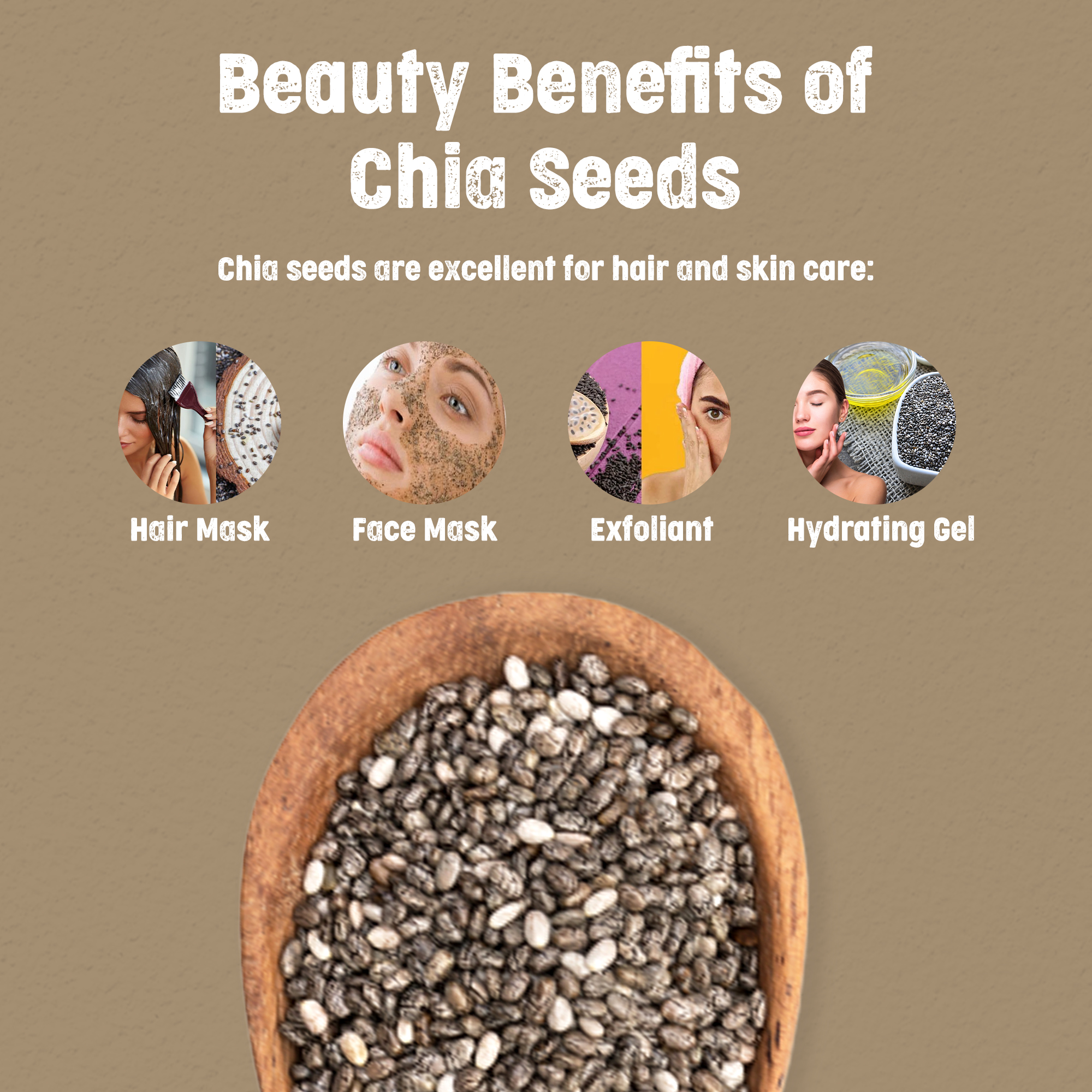 Various health benefits: Being a nutrient-dense food, research has uncovered that regularly eating these seeds can improve your health in numerous ways. Some top Health benefits of Chia seeds includes: Improved Digestive health, Good Skin and strong hairs, Heart Health, Boost in Energy and proper metabolism, Stronger bones and teeth, Weight-loss and Muscle-gain and Fight against Breast and Cervical Cancer, etc.