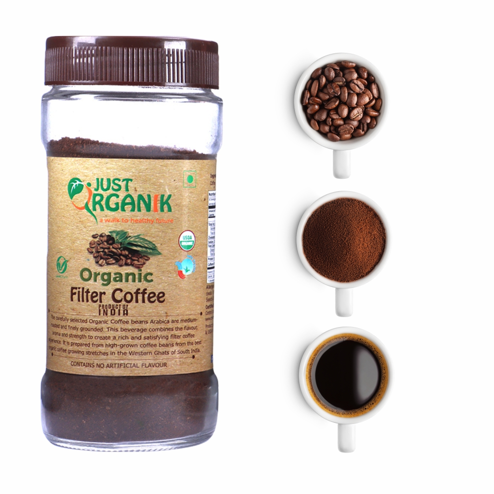 Filter Coffee: Filter coffee is prepared from high-grown coffee beans from the best organic coffee growing stretches in the Western Ghats of South India. This premium coffee is softly roasted for brilliant body and flavor.
