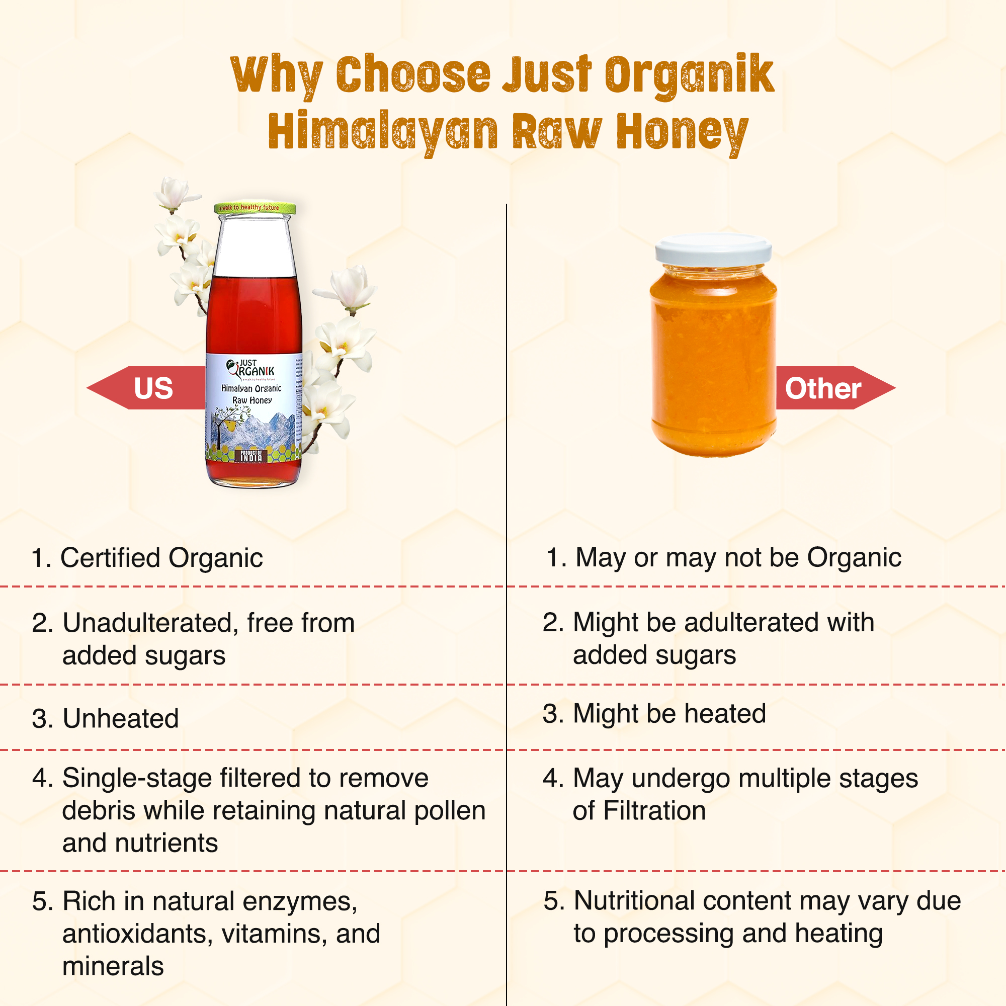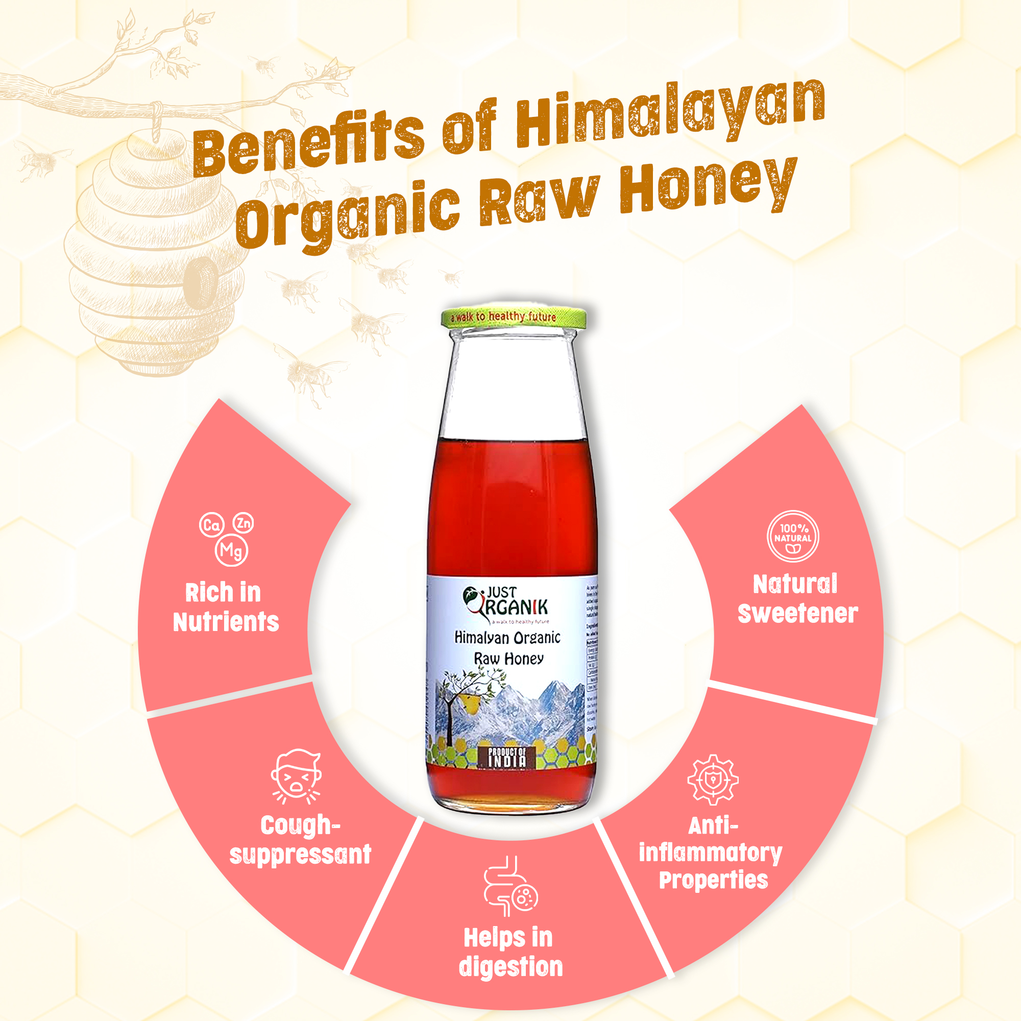 - Just Organik Raw Honey sourced from Uttarakhand is a pure and natural sweetener harvested from the pristine landscapes of the region. This raw honey is free from additives and artificial processing, preserving its authentic taste and nutritional goodness, perfect for adding a touch of natural sweetness to your favorite recipes and beverages.